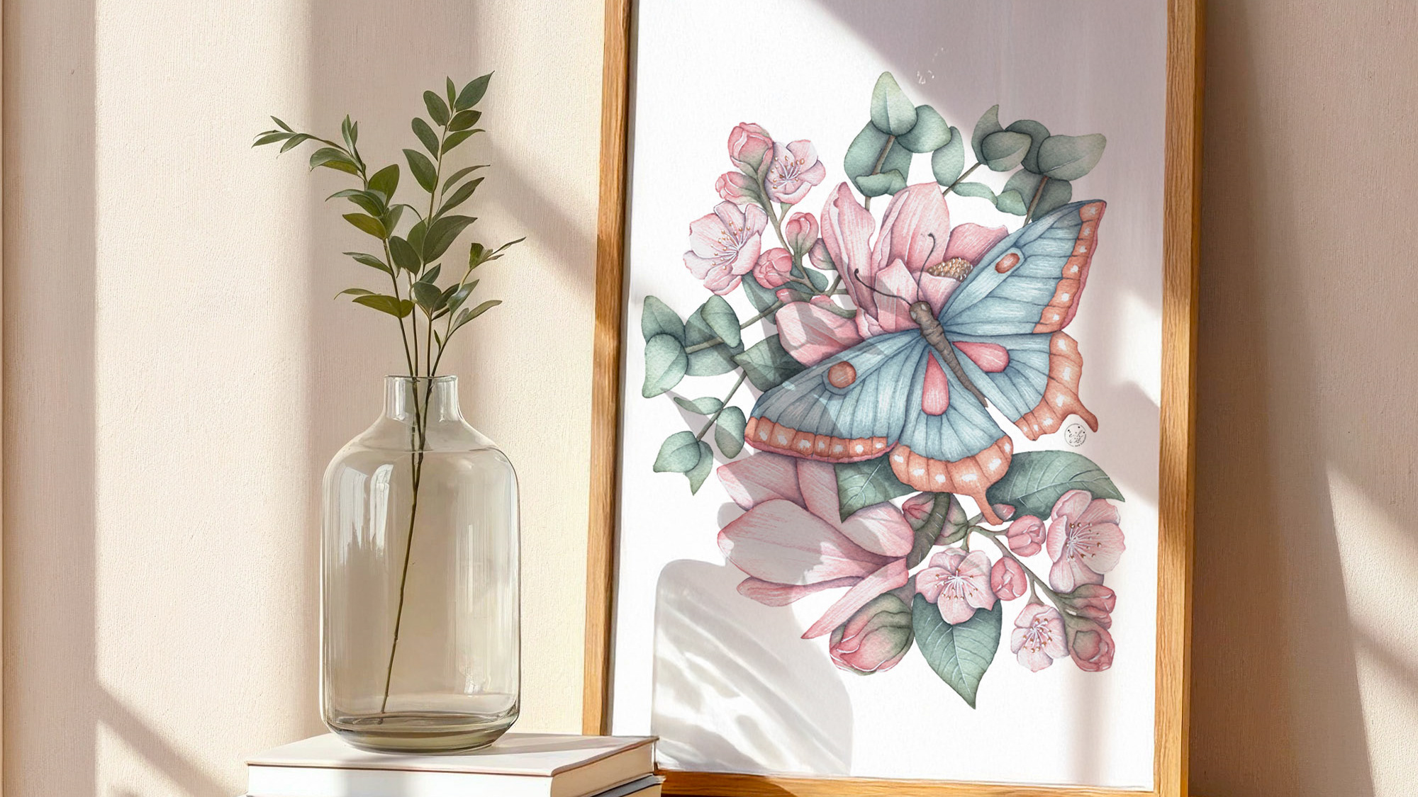 Aquarell ist meine Leidenschaft – eine Möglichkeit, die zarte Schönheit der Natur einzufangen. Inspiriert von Pflanzen, Blumen, Blättern und Tieren übersetze ich ihre feinen Stimmungen in sanfte Pastelltöne und erdige Farben. Jede Skizze wird von Hand gezeichnet und gemalt und anschließend am Computer zu einem Collagen-Kunstwerk weiterentwickelt – so verbinden sich Fantasie und Realität. Geboren in Brasilien und heute mit meinem Mann und unseren drei kleinen Kindern in Deutschland lebend, trage ich die Farben und Texturen der tropischen Flora in meinem Herzen. Sie verbinden mich mit meinen Wurzeln und prägen die Geschichten, die ich durch meine Kunst erzähle. Außerdem ist es mir eine Herzensangelegenheit, Kinder zu unterrichten und ihnen die Werkzeuge zu geben, sich durch Kunst auszudrücken. Das ist ein echtes Geschenk, und ich liebe es, etwas an sie zurückzugeben. Ich hoffe, meine Arbeit bringt Ihnen Freude, weckt Neugier und lädt dazu ein, einen Moment innezuhalten und die Schönheit der Natur um uns herum zu schätzen.